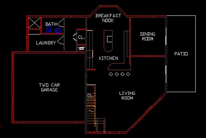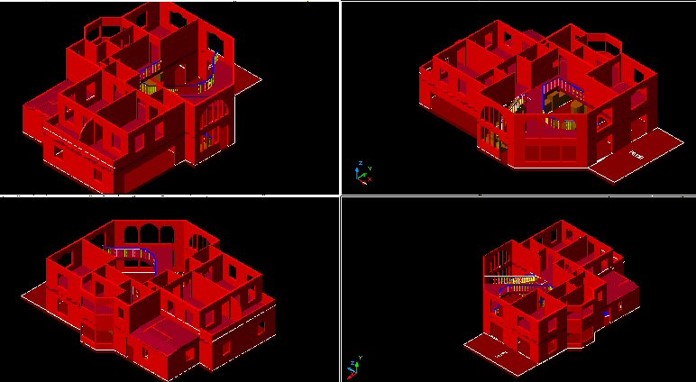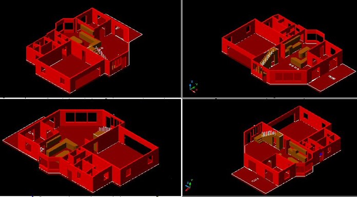This house was brought to me by a friend. I believe it is an existing house, or at least based off one. I took it and fixed some things and modeled it into AutoCAD.