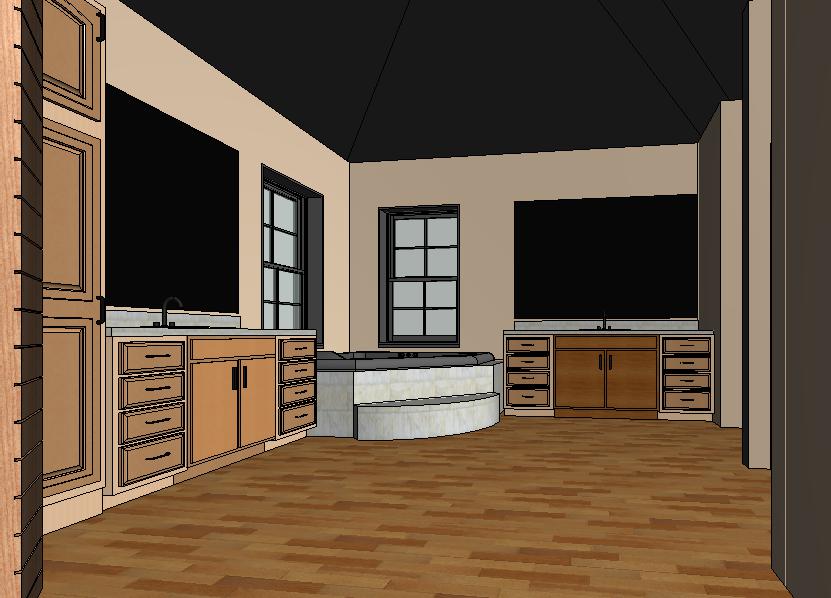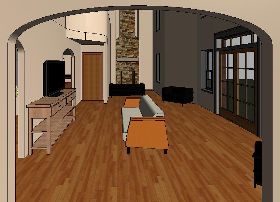 To include a window over the front entry, I had to redo the room arrangement, as the original plan would have a wall and closet in the middle of the window.I created another option to add a spare room open to the rest of the house instead of the sitting room in the original design only open to the Master Bedroom.I do need to fill in the floor opening in front of the window of this option.