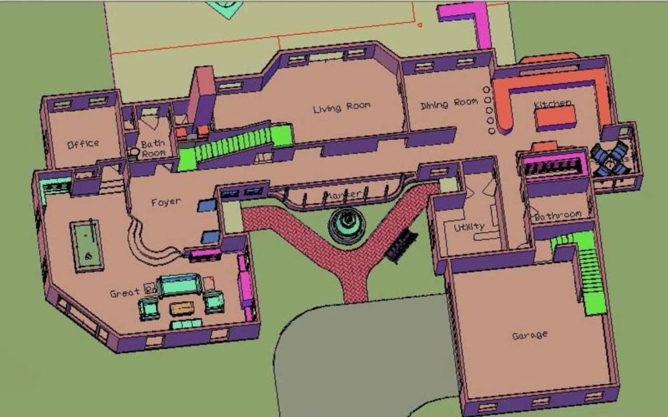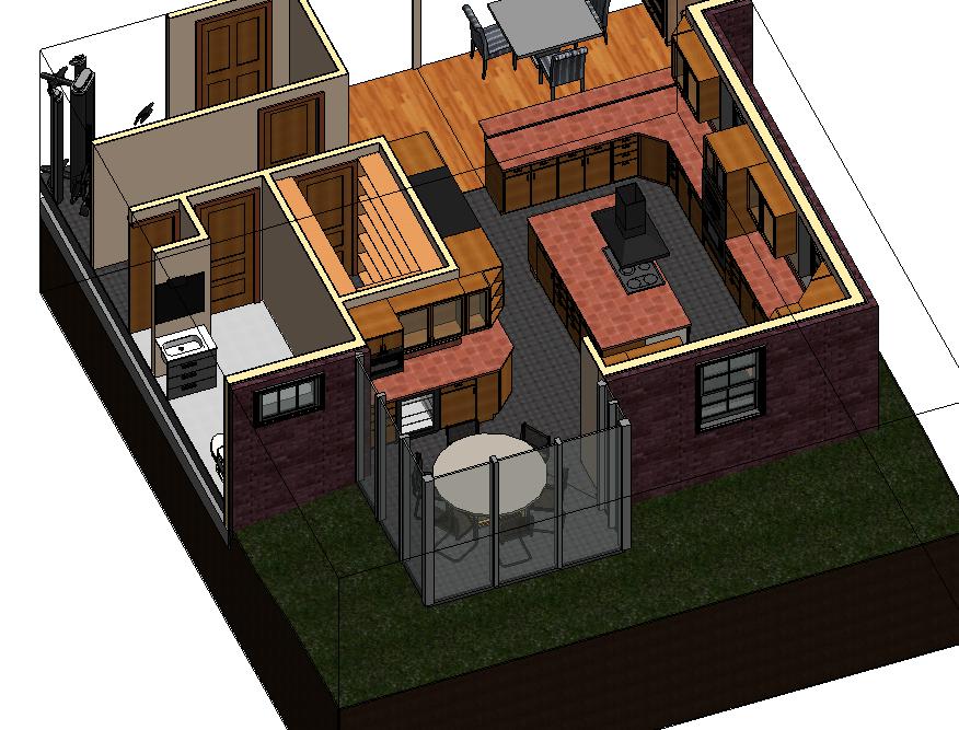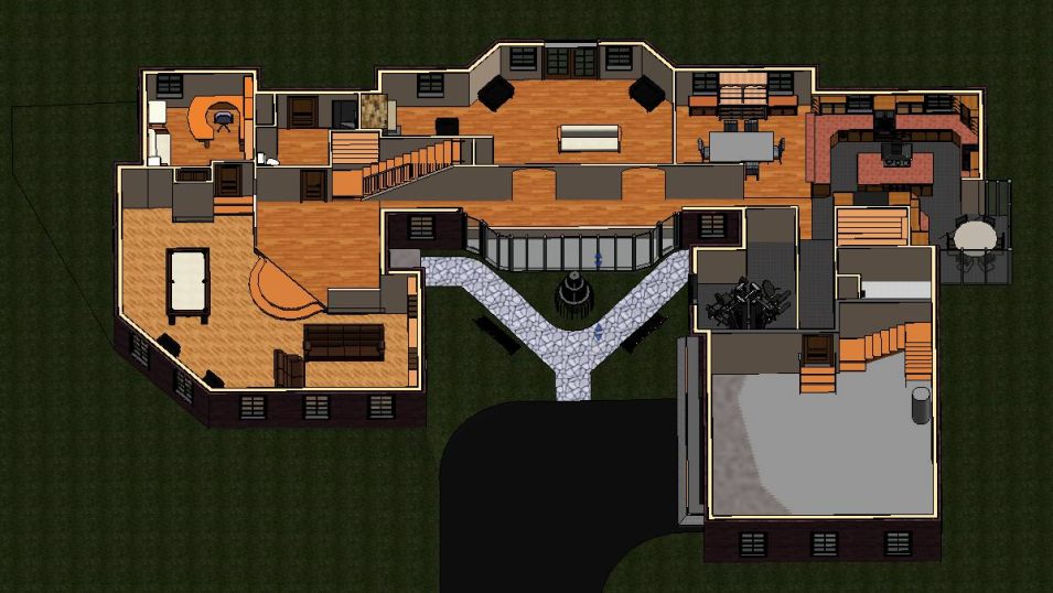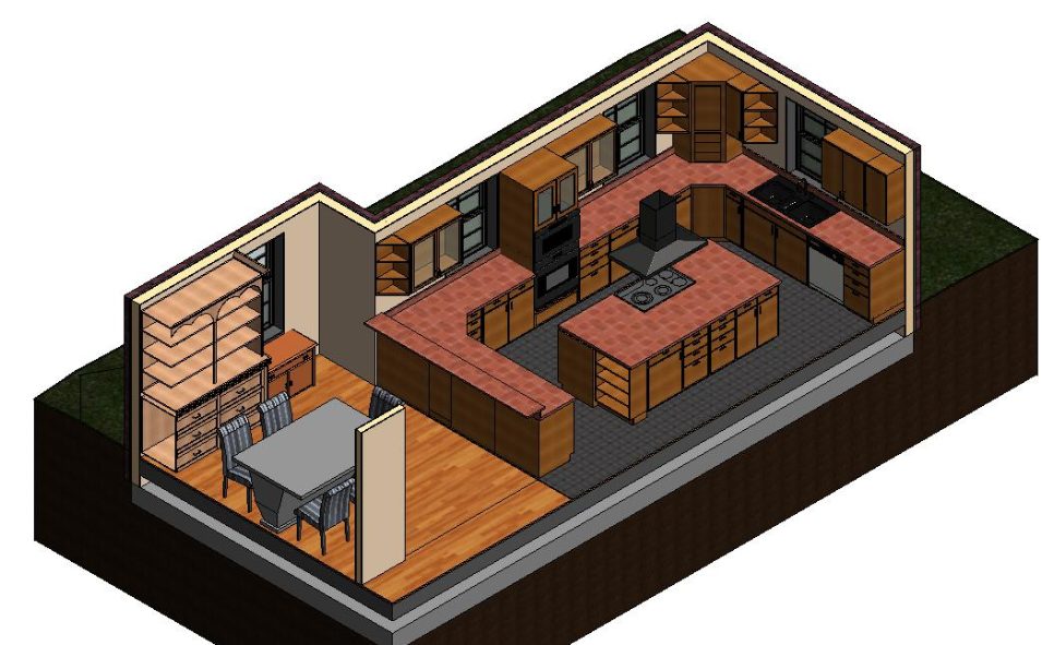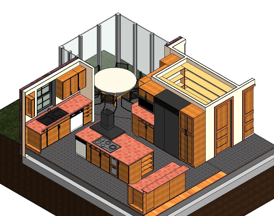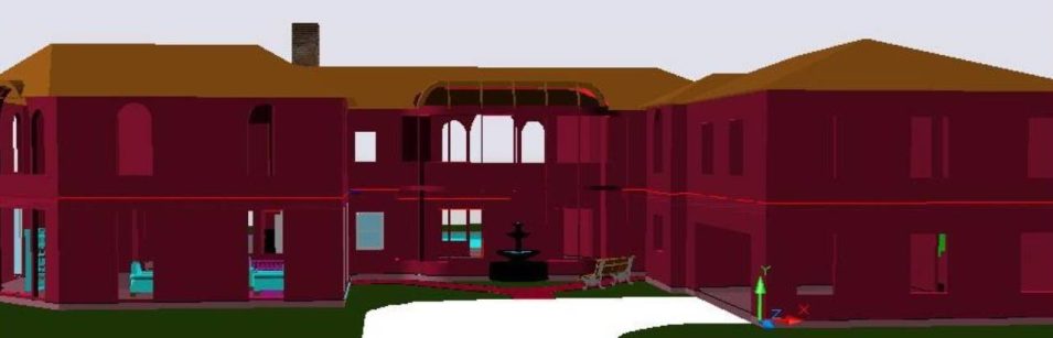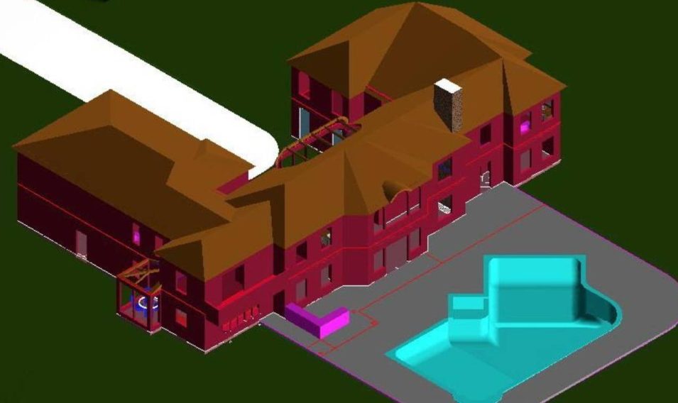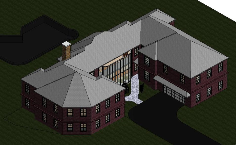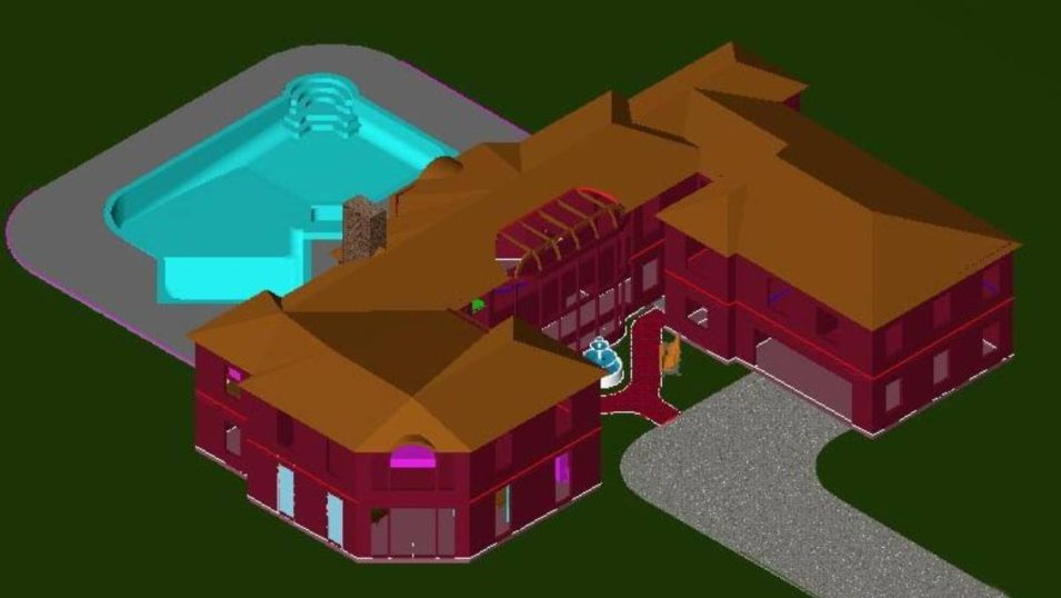 For the most part, the designs between the Revit and AutoCAD models remain the same. The key differences are the more detailed pool, a balcony and outdoor kitchen area, and moving the laundry room location to the upper floor. In addition, I had trouble designing the rounded part of the glass wall on the Revit model that is seen in these images.